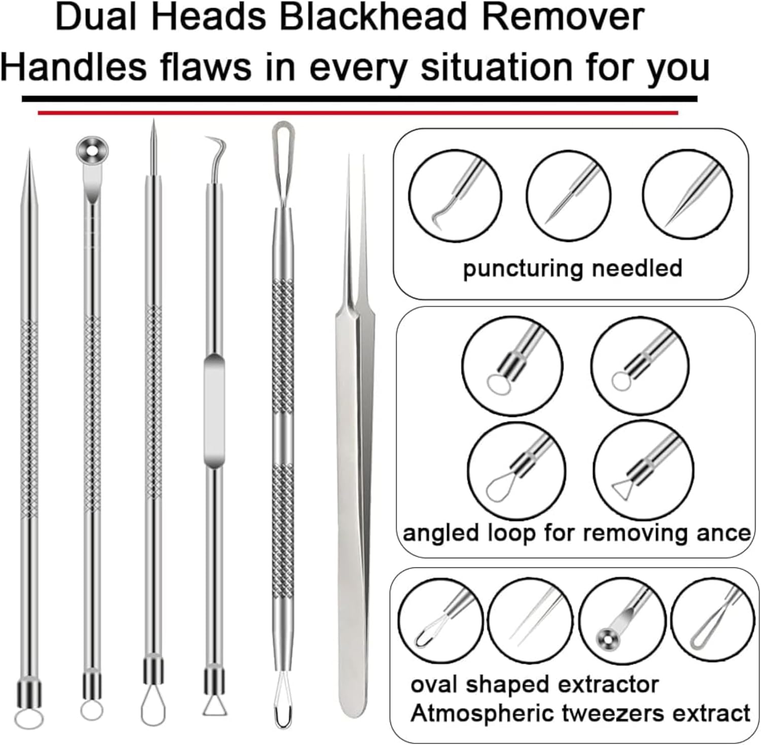 - ⭐ DUAL HEAD DESIGN - Each needle has two heads. These practical blackhead and comedone acne pimple extractors will help us to remove blackheads, acne, and various blemishes easily.