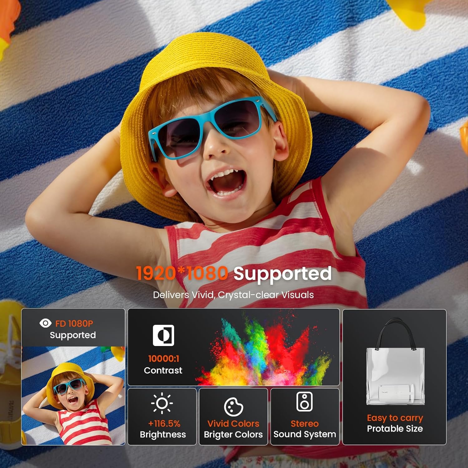 HY300 Pro Ultra Portable Projector 4K WiFi 6 BT 5.2 Upgraded Portable Projector Full HD Supported for Phone/PC/TV/HDMI /PS5 /Laptop Auto Keystone Home Theater 180° Rotation [Built-in App]